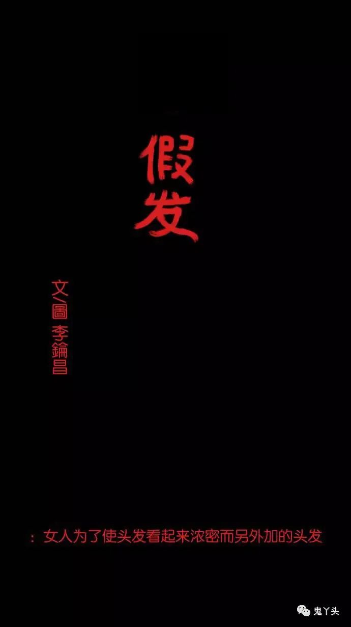 韩国恐怖漫画:假发 随着女主年龄的增长,青春也随之逝去,在朋友的聚会上眼红朋友的假发, 回家的路上被寡妇的长发吸引,随即下车想要收购 可是寡妇的爱人在去年去世,生前最爱她的一头秀发,为证明自身贞洁,决定一辈子留着自己的头发 拒绝女主后,见软的